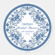 Pegatina Redonda Elegante Chinoiserie Floral Victoriano Chino Azul