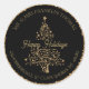 Un árbol de Navidad purpurina de oro hecho de elegantes remolinos es el telón de fondo para este pegatina de la dirección de regreso de las vacaciones de la moda que funciona como sello para sobres. El saludo de vacaciones en el centro se realiza en un bonito estilo moderno de caligrafía. El texto se puede editar para adaptarlo a sus necesidades. Sus nombres aparecen en la parte superior de la etiqueta en un formato curvo. La dirección de retorno gira alrededor de la curva inferior del círculo. El falso círculo purpurina dorado alrededor del borde interior del diseño añade el toque festivo perfecto. Estos pegatinas sin duda le agregarán un toque de clase a cualquiera de sus envíos de vacaciones.