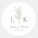 Pegatina Redonda Elegante Classic Leaf Monograma Boda Olive Green
