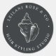 Etiquetar la correspondencia comercial o los productos con estos pegatinas de moda que coinciden con nuestro conjunto de marcas del logotipo de Conch Shell para peluqueros, salones o cualquier negocio de playa o isla. Los ricos pegatinas negros blandos presentan un falso ilustracion de concha de Relieve metalizado plateado en el centro, con dos campos de texto circulando por el exterior, con letras blancas clásicas.