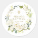Pegatina Redonda Elegante Crema Blanca Flores Cruz de Oro Bautismo