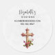Pegatinas de negocios con un ilustracion de bonito con una sencilla cruz de madera cubierta de flores rosas y hojas verdes.