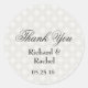 Estas gracias pegatinas animarán cualquier sobre. Al mostrar un diseño elegante en blanco y plateado damasco, "Gracias" está escrito en letra gris. Justo debajo está el nombre de la pareja. En la parte inferior de la fecha del evento. ¡Haga su pedido hoy mismo! Diseño: LaBoutiqueDeiColori: www.laboutiquedeicolori.com