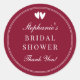 Pegatina Redonda Elegante Desayuno Nupcial Rojo Burdeos para San Va