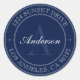 Pegatina Redonda Elegante dirección de Monograma Azul y Blanco de l
