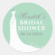 Los pegatinas que prefieren las duchas redondas de novias tienen un vestido boda, una combinación de colores de gris blanco, verde menta y gris de carbón oscuro, y texto personalizado que se puede personalizar con el nombre de la novia y la fecha del evento.