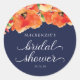 Pegatina Redonda Elegante ducha de novia azul marino y amapola dora