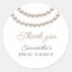 Ducha de novia elegante y blanca Pegatina redonda clásica con un collar de perlas plateado en acuarela. Es muy fácil de personalizar, con detalles de tus datos personales.
