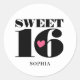 Pegatina Redonda Elegante dulce Dieciséis cumpleaños Nombre persona