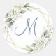 Pegatina Redonda Elegante Dusty Blue Floral Greeneration MONOGRAM