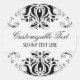 Pegatina Redonda Elegante encaje floral negro y damascos blancos