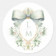 Pegatina Redonda Elegante Escudo con Sage Green Bow | Boda de monog