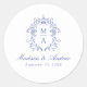 Pegatina Redonda Elegante Escudo de Chinoiserie azul Monograma Boda