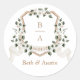 Elegante Pegatina de Sello para sobres Boda Escudo de Rama de Hierro. Pegatina de sobres Boda de flores blancas. Pegatina de sobres de Escudo de monograma de bebé verde sabio