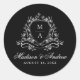 Pegatina Redonda Elegante Escudo floral Monograma Boda negro