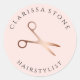 Pegatina Redonda Elegante estilista de rosa de oro y tijeras rosada