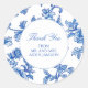 Pegatina Redonda Elegante Favor de Boda Chino Azul