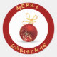 Pegatina Redonda Elegante Feliz Navidad Rojo y Dorado Bauble
