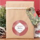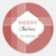 Pegatina Redonda Elegante Feliz Navidad Tartan Burgundy