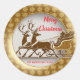 Pegatina Redonda Elegante fiesta de navidad con la nieve de oro de