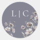 Pegatina Redonda Elegante flor de acuarela gris oscuro de boda