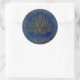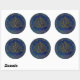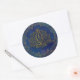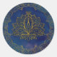 Pegatina Redonda Elegante flor Gold Lotus en azul