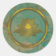 Pegatina Redonda Elegante flor Gold Lotus en mármol