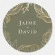 Elegante arte de línea dorada con flores y follaje, sticker personalizado. El color de fondo que se muestra en verde musgo de terrario chic se puede personalizar.