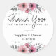 Este elegante diseño de pegatina presenta una hermosa impresión floral de acuarela con una nota de agradecimiento junto con el nombre de la pareja y la fecha de su boda. Agregue un toque personal a esta pegatina floral agregando su propio texto o mensaje utilizando la opción personalizar.