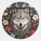 Pegatina Redonda Elegante Floral de Lobo Gris