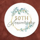 Pegatina Redonda Elegante Floral Dorado 50 Aniversario de Boda