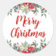 Pegatina Redonda Elegante Floral Feliz Navidad