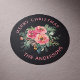 Pegatina Redonda Elegante Floral Negra de Invierno | Navidad