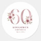 Pegatina Redonda Elegante Floral Rosa 60 cumpleaños