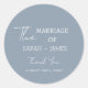 Elegante Gracias Dusty Blue Script Boda Blanco Pegatina Redondo Clásico