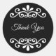 Pegatina Redonda Elegante gracias caligrafía en blanco y negro