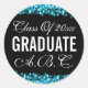 Pegatina Redonda Elegante Graduación Luces Turquesas y Parkles