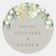 Pegatina Redonda Elegante Greige Snowberry+Eucalipto Boda