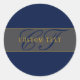 Pegatina Redonda Elegante guión Monograma Marina oscura gris azul y