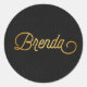 Pegatina Redonda Elegante guión personalizado Brenda Gold Black