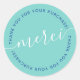 Pegatina Redonda Elegante guión verde azulado francés merci gracias