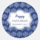 Pegatina Redonda Elegante Happy Hanukkah Menorah Pattern Blue