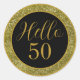 Pegatina Redonda Elegante Hola Cumpleaños 50 Negro Dorado Brillante