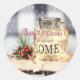 Pegatina Redonda Elegante Holly Berries, ramas, vacaciones en velas
