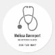 Pegatinas de enfermería registrados personalizados con su información. Diseñado con un estetoscopio gris simple sobre un fondo blanco. Elegante diseño minimalista.
