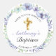 Pegatina Redonda Elegante lavanda cruza de oro bautizo bebé