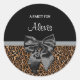 Pegatina Redonda Elegante Leopard Print Elegant Black Bow Nombre Fi