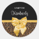 Pegatina Redonda Elegante Leopard Print Elegant Yellow Bow and Name