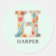 Pegatina Redonda Elegante Letra floral natural H Nombre personaliza