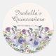 Pegatina Redonda Elegante Lilac Azul Floral Quinceañera Nombre Fech